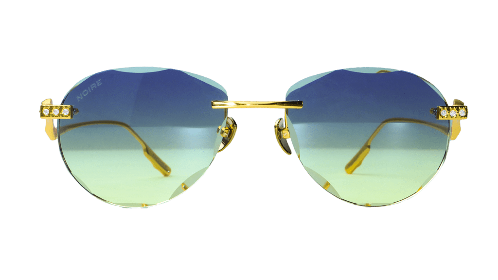 A masterpiece with ten 2.0 mm VVS2 diamonds on each side, the Noire Elegante 2.0 sunglasses combine titanium and gold for unmatched sophistication, limited to 410 pieces.